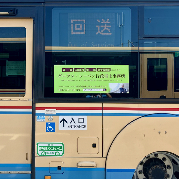 お盆前の8月9日から、阪急バス 宝塚営業所所属のバスの車体に、ステッカーによる広告を掲出しています。